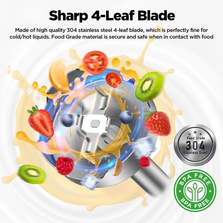 Sharp Stainless Steel Blades – With upgraded blades, you can blend the hardest foods easily. Anti-splash design keeps foods in the beaker from splatter.The stainless steel body sophisticated and scratch-resistant,which is perfect for baby food making and can quickly blend ingredients.