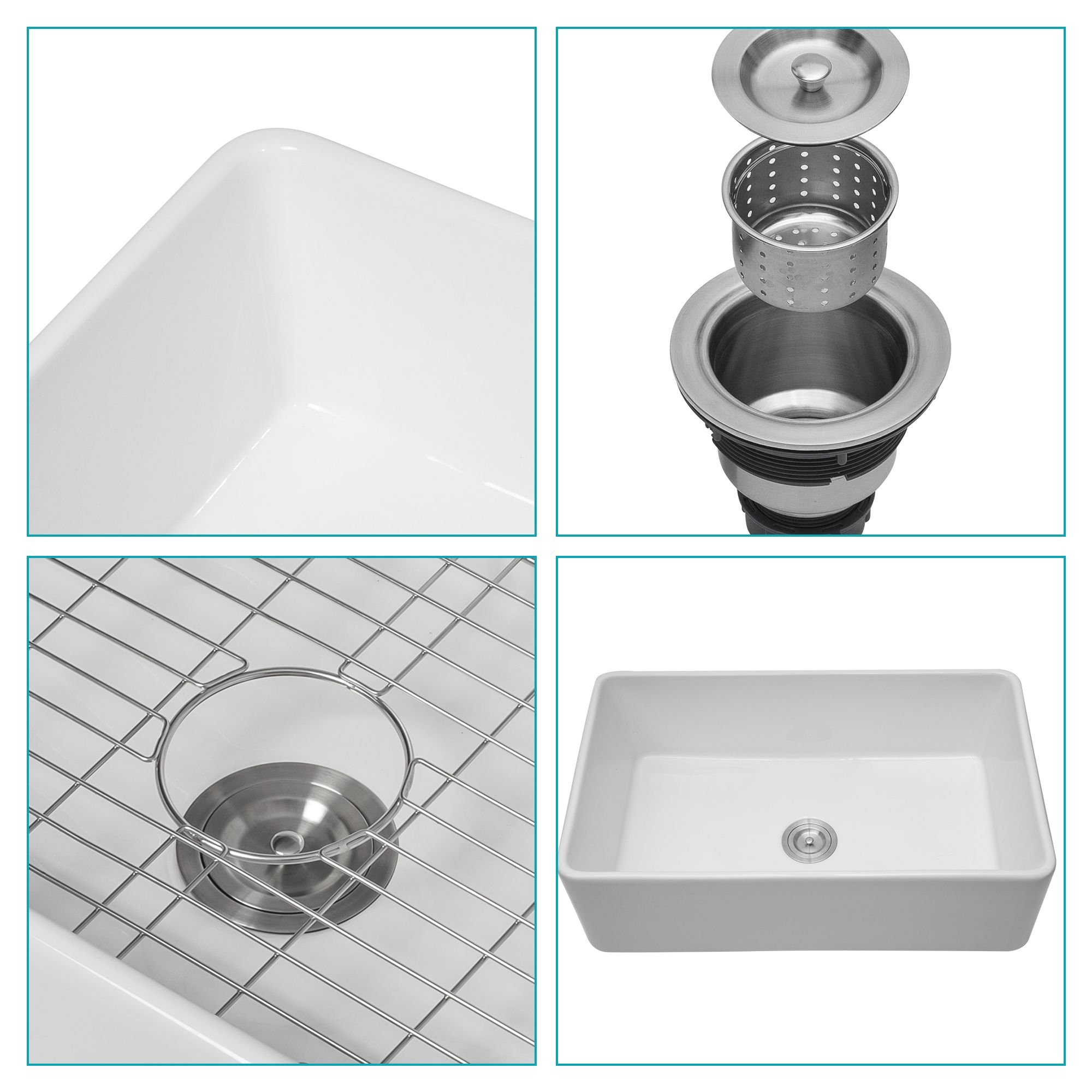 What's in the Package --Include a 33 inch farmhouse kitchen sink, 304 stainless steel dish grid, basket strainer.