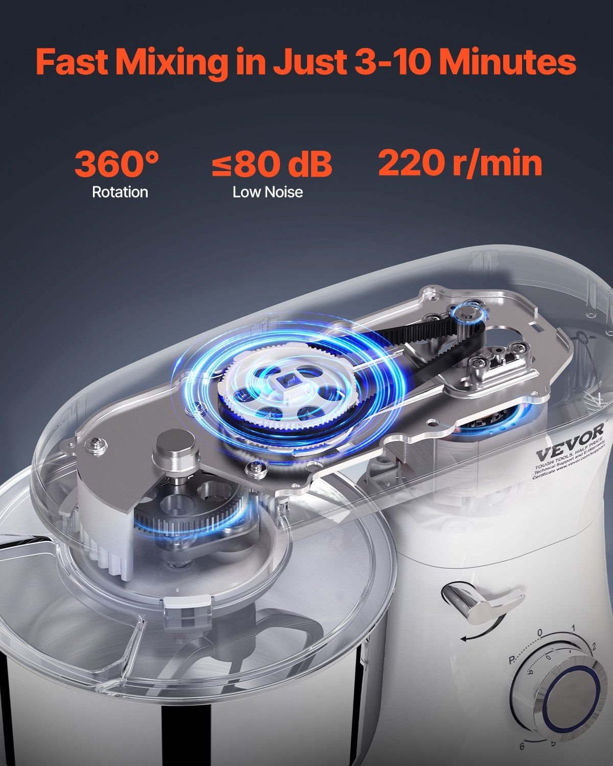 3.6 QT / 5.68 L Capacity Bowl: Our commercial food stand mixer includes a spacious stainless steel bowl of 6 qt (5.68 L), so you can mix large batches of dough, bake chocolate chip cookies, prepare fresh bread, or even mashed potatoes for your next big meal.