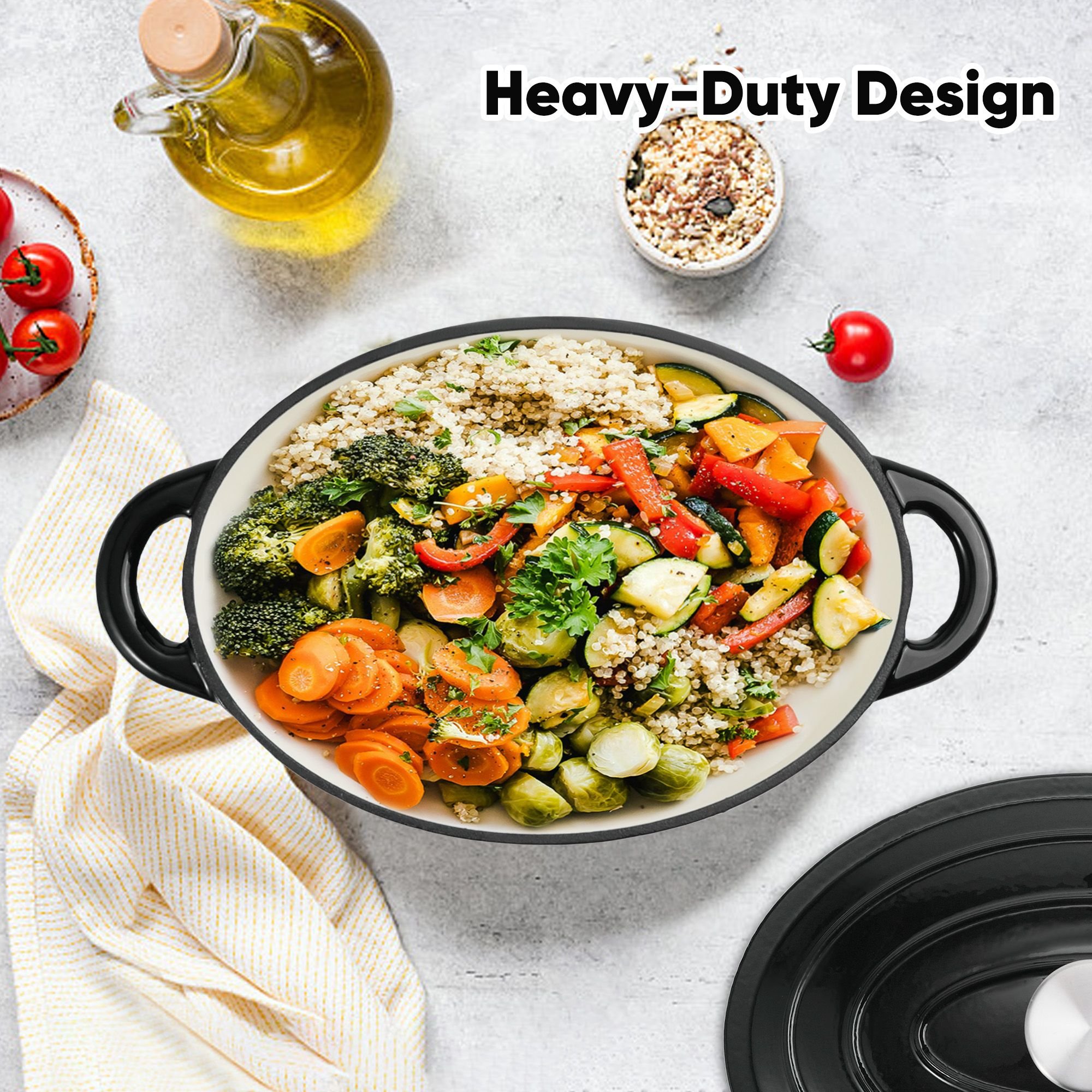 ��LARGE 4.5-QT CAPACITY: The oval dutch oven with a diameter of 11.4 inches and a capacity of 3.5 liters meets all the needs of daily stewing, don't worry about even family gatherings. It can be used in various cooking methods, such as stewing, cooking, baking, etc.The highest temperature tolerance is as high as 500°F.